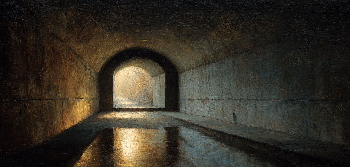 Doch wie jedes starke Symbol trägt auch der Tunnel seine Schattenseite in sich. Der Weg durch einen Tunnel ist dunkel, eng und mit begrenzter Sicht verbunden. Wer sich in einem Tunnel befindet, sieht nur das, was unmittelbar vor ihm liegt. Dieser Tunnelblick kann auf eine verengte Wahrnehmung hinweisen, auf das Ausblenden wichtiger Perspektiven und auf eine Fixierung, die den Gesamtzusammenhang verliert. Der Tunnel schützt zwar vor dem, was an der Oberfläche geschieht, aber er isoliert auch. Was unbemerkt und im Verborgenen stattfindet, entzieht sich der Kontrolle anderer – und manchmal auch der eigenen.
